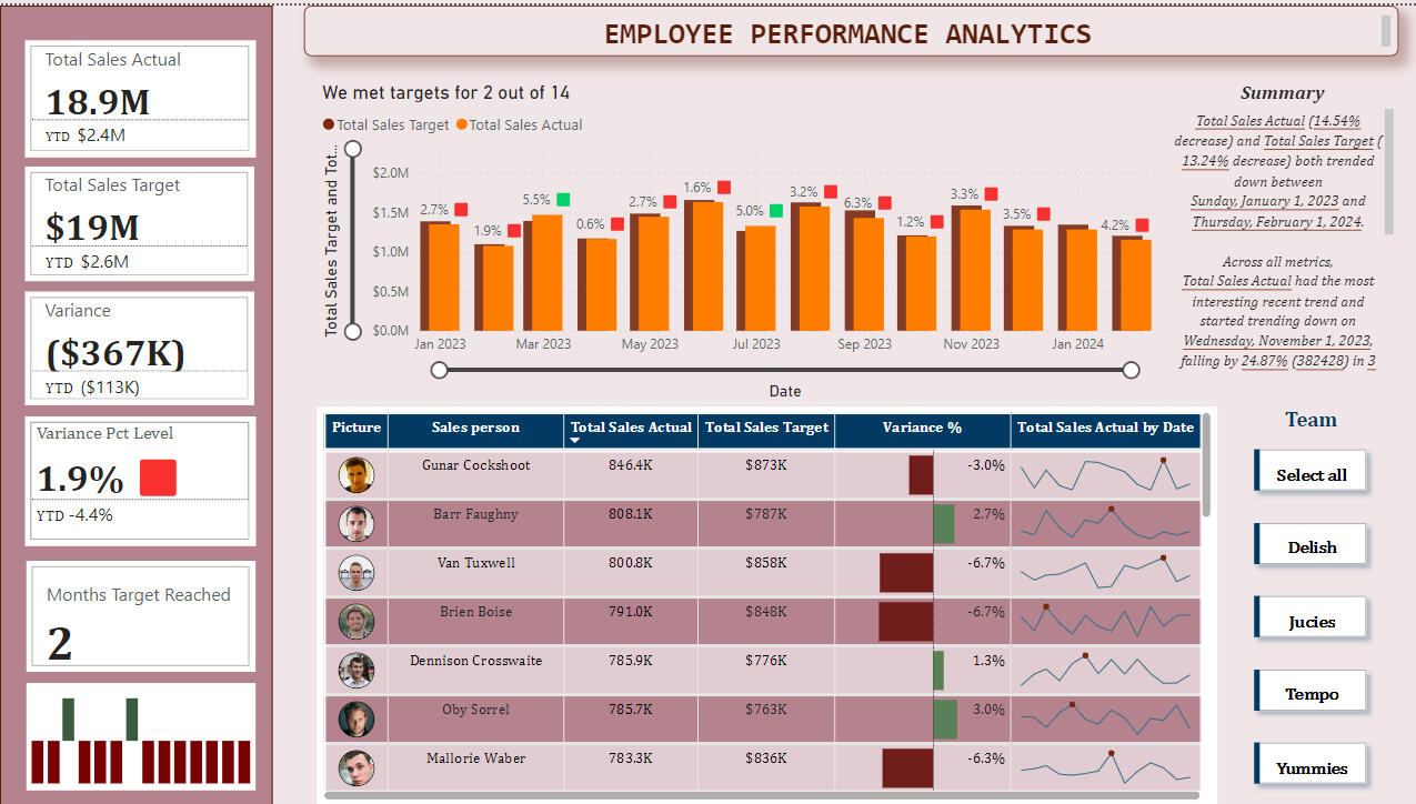 An intruiging feature in this dashboard is automated summary generation features, based on the targets selected.