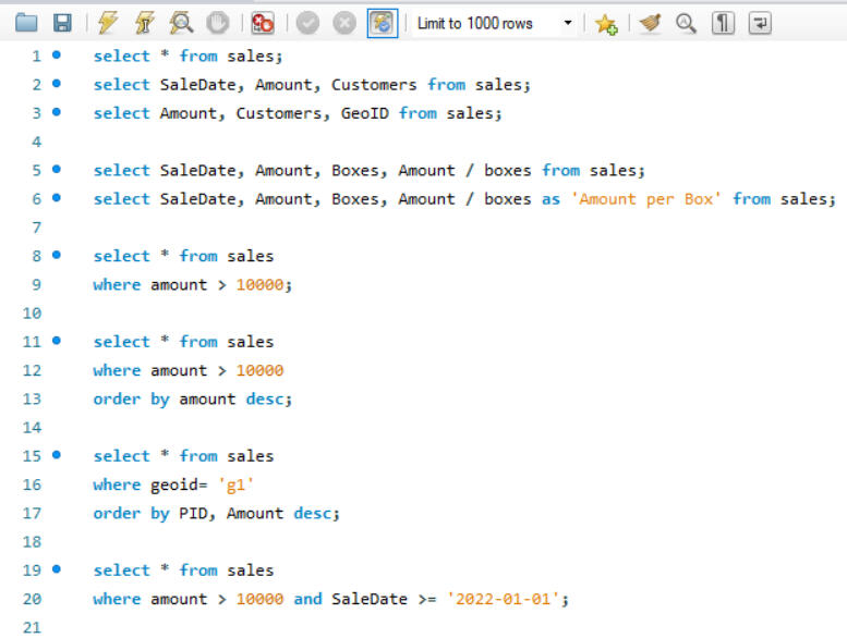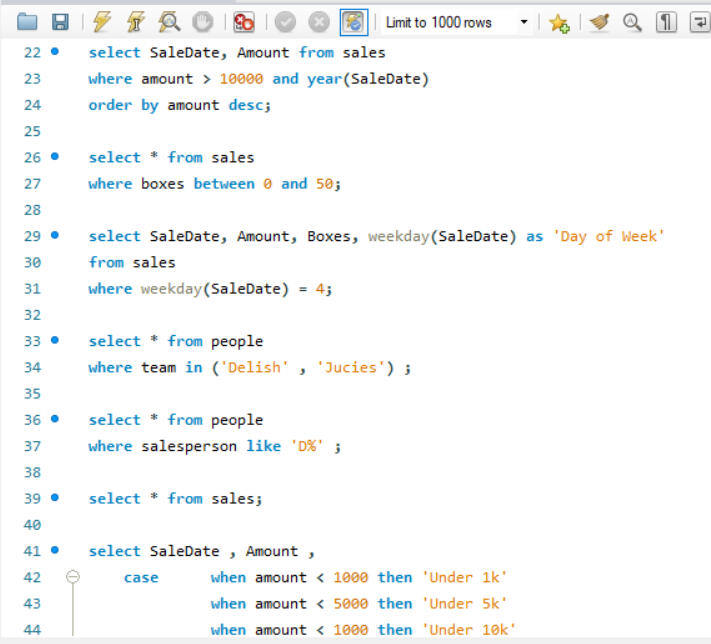 The SQL dataset for Awesome Chocolates involves a comprehensive range of operations. It includes setting up the dataset and schema, adding calculated columns within the SELECT statements, and employing the WHERE clause to filter results. The project also covers sorting query results based on various conditions including BETWEEN , handling dates, and integrating data from other tables from schema. Additionally, it utilizes the IN clause and CASE statements to implement conditional logic and branching.