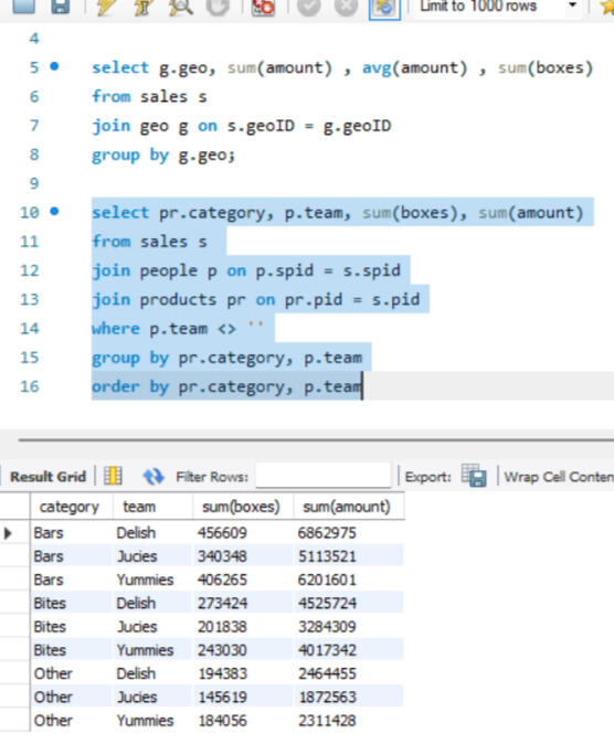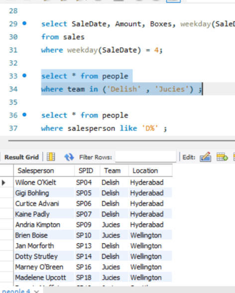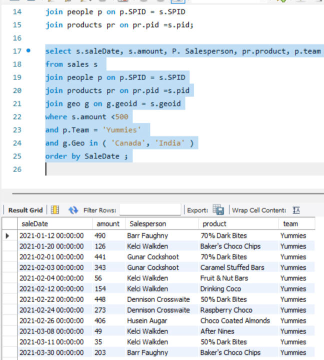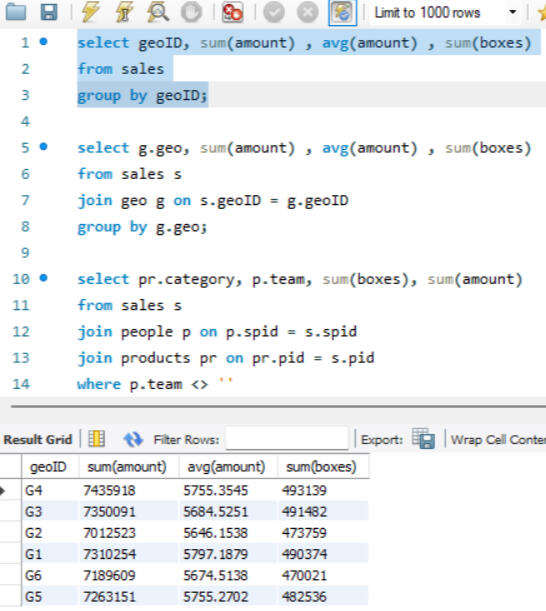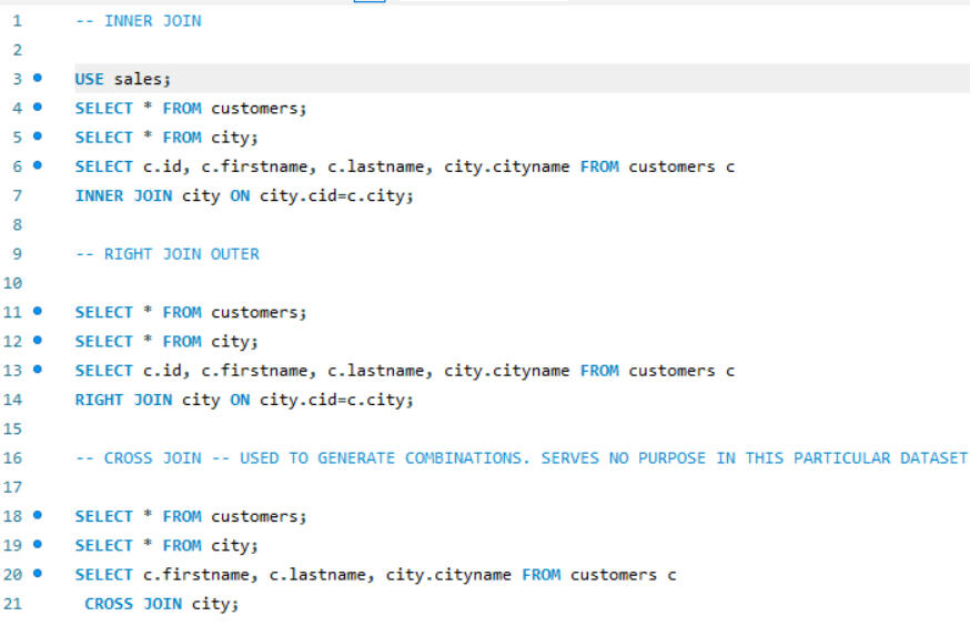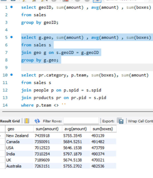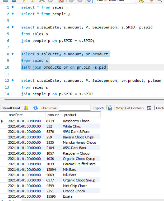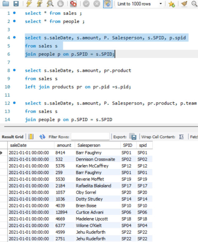 Here joins are used to combine data from two different tables, such as Sales and People. Each join type determines how records from the tables are matched and combined, ensuring that the appropriate data is selected for analysis or reporting, after which grouping is done.